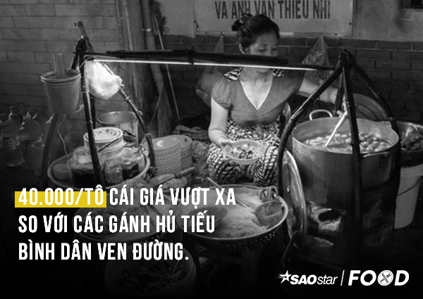 Giá cho một tô đầy đủ các hương vị trên là 40.000 đồng, vượt xa so với các gánh hủ tiếu ven đường thường thấy. Tuy nhiên, nếu một lần thưởng thức, bạn sẽ cảm thấy hài lòng với giá trị mà món ăn đem lại. Nước dùng mang vị ngọt tự nhiên, thức ăn thì đầy ắp và to ụ sẽ giúp bạn no nê cho một bữa tối ấm bụng.