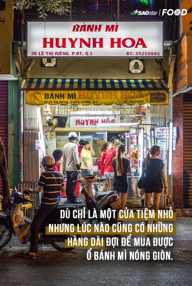 Bánh mì Huỳnh Hoa được xem là cái nôi của bánh mì Sài Gòn. Có mặt từ rất lâu đời, nơi đây luôn được liệt vào danh sách những món ăn “chưa ăn xem như chưa đến Sài Gòn”. Chỉ là một căn tiệm nhỏ trên đường Lê Thị Riêng nhưng lúc nào cũng có những hàng dài đợi để mua được ổ bánh mì, đặc biệt còn có người nước ngoài.