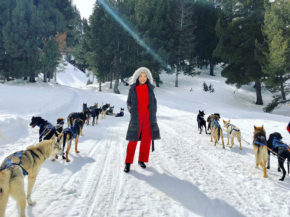 Phương tiện di chuyển trên những ngọn đồi tuyết trắng là xe chó kéo. Một xe thường có 12 chú chó dũng mãnh. Nữ MC cho biết cô may mắn được thử loại phương tiện này. “Khi được ngồi trên xe, cùng hòa mình vào thiên đường tuyết trắng Val d’Aran, đó thật sự là một cảm giác hạnh phúc khó tả”, cô nói.