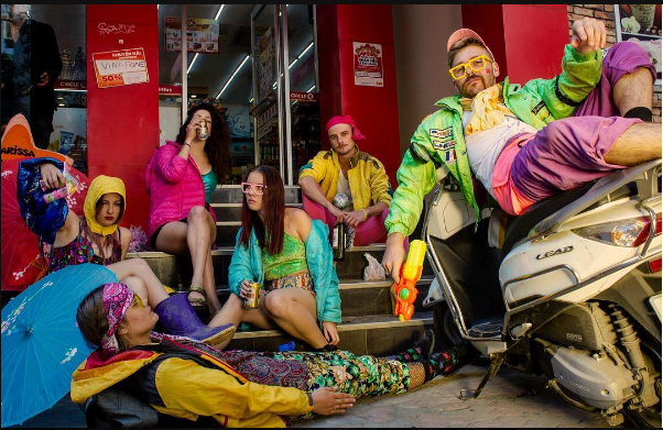 Team khách du lịch Việt Nam tạo dáng “chất ngầu” trước cửa hàng.