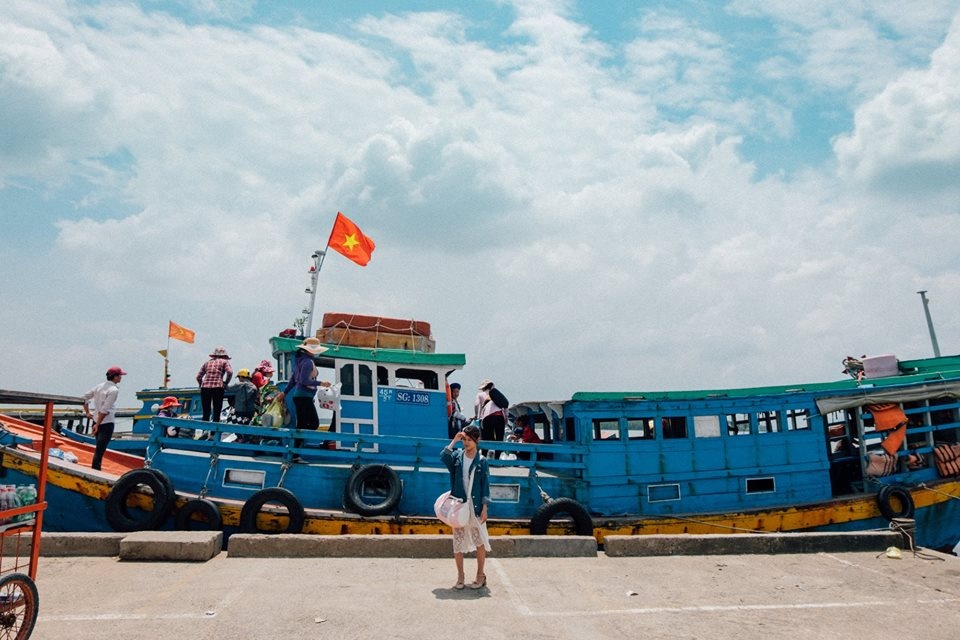 Gần bến đò có chỗ gửi xe máy qua đêm với giá 10.000 đồng. Đi tàu sang đảo giá 10.000 đồng/1 người đi trong 45 phút là tới nơi.