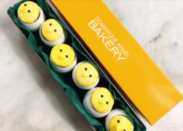 Với những ai đang tìm kiếm một bữa tiệc nghỉ lễ truyền thống, giản dị nhưng đầy quyến rũ thì có thể chọn “Peep-a-Boos” nổi tiếng của tiệm bánh. Những chú gà con màu vàng nhỏ xuất hiện trong vỏ trứng chứa đầy sôcôla đen, mật ong và caramel muối. Đảm bảo nếu nhâm nhi Peep-a-Boos, cùng một tách trà với những người thân trong gia đình thì quả thực là rất tuyệt vời.