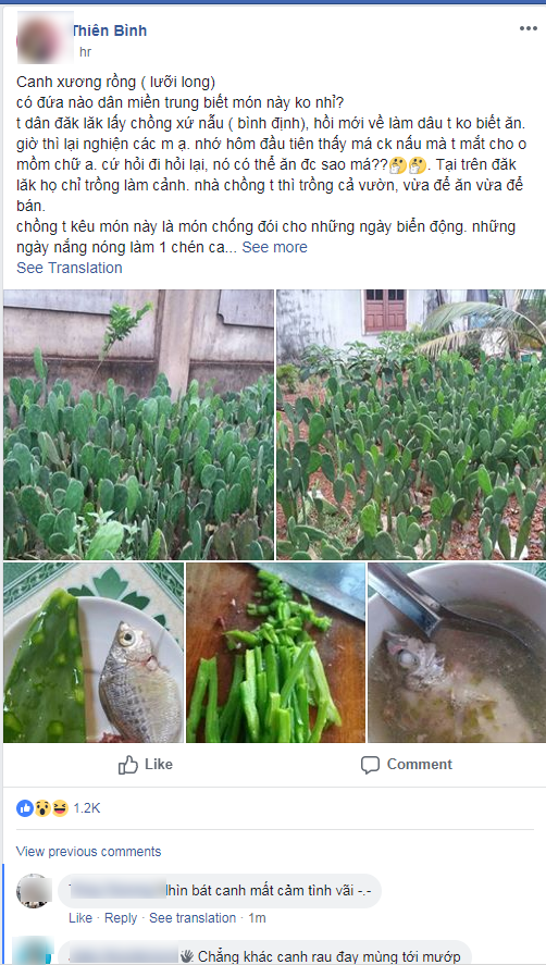 Món canh xương rồng được chị Thiên Bình chia sẻ trên mạng xã hội khiến nhiều người chú ý