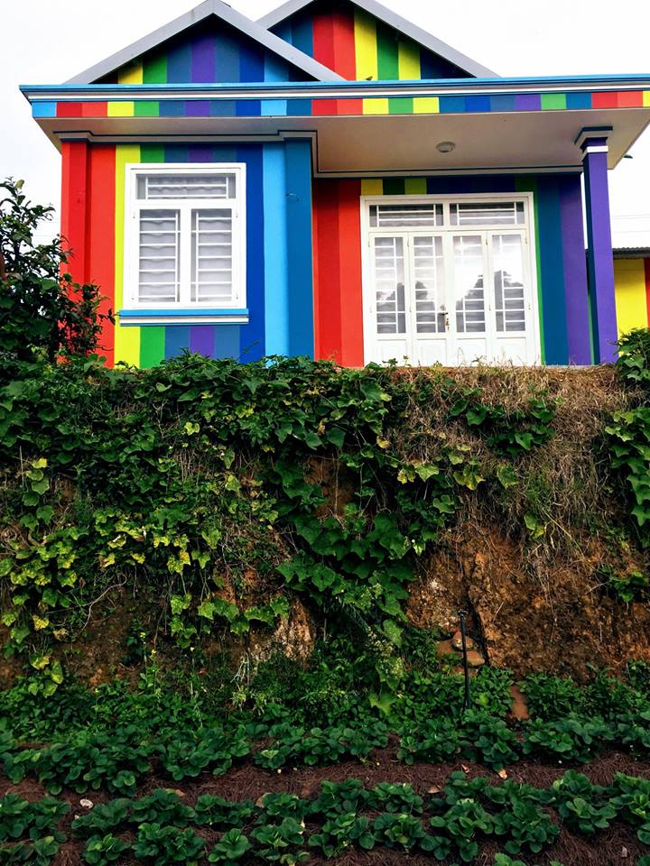 Những căn nhà ở Đà Lạt lúc nào cũng có sức hút rất riêng. Có nhà thì cổ kính như một căn biệt thự cũ xưa, có nhà thì làm bằng kính để bất kỳ ai ngồi ở trong cũng có thể phóng tầm mắt ra không gian đồi núi xung quanh. Và cũng có nhà được sơn sặc sỡ như ngôi nhà dưới đây.