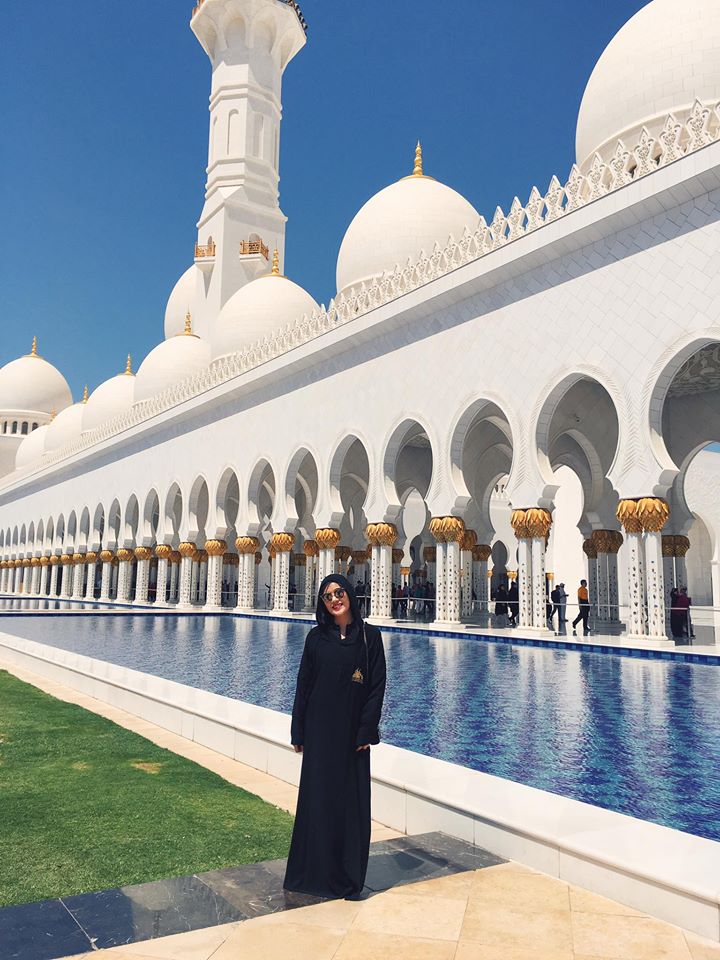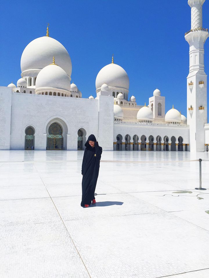 Dubai là chuyến đi thứ 8 trong năm của Milan. Đầu tiên, cô ghé thăm đền thờ Sheikh Zayed Grand ở Dubai. Đây là một kiệt tác kiến trúc Hồi giáo với hơn 80 mái vòm bằng đá cẩm thạch trên trần tô điểm trên cao bởi hơn 1000 trụ cột và được nhấn mạnh bởi bốn ngọn tháp cao 107m.