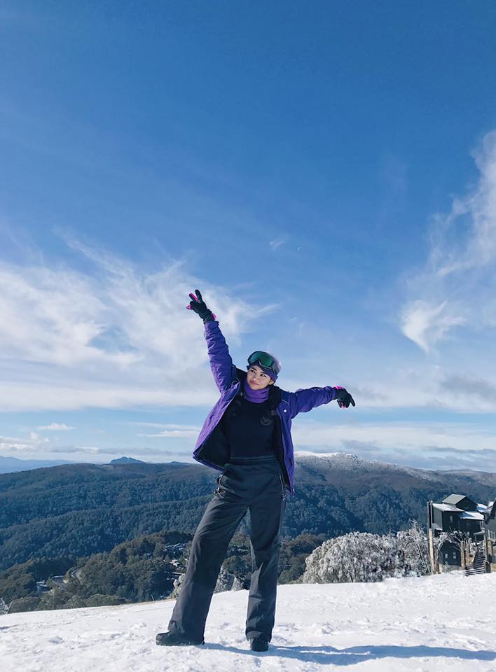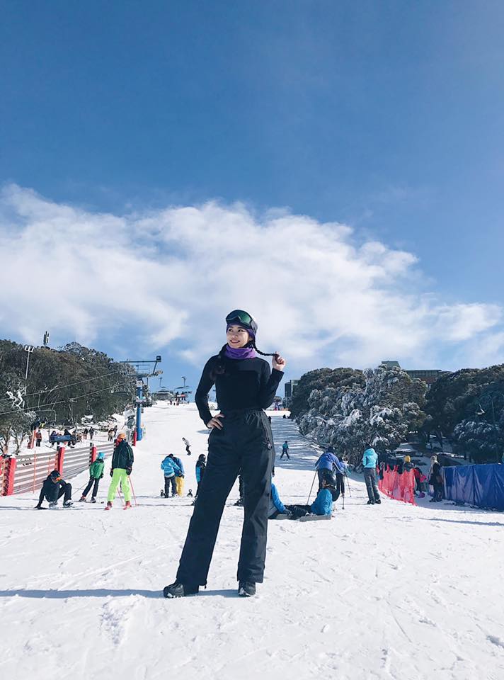 Cô nàng cũng không quên khám phá và trải nghiệm tại khu trượt tuyết mùa hè trên núi Buller. Ở độ cao 1,800 thước và cách nội thành Melbourne chỉ 3 giờ lái xe, Mount Buller là điểm hẹn lý tưởng của đa số dân địa phương và khách du lịch. Mount Buller có 3 loại đường trượt, được phân theo màu Lục, Lam và Đen với độ khó tăng dần.