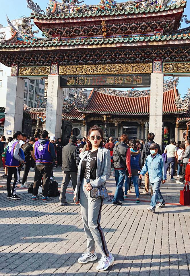 Điểm “xuất ngoại” đầu tiên của năm 2018 của Milan Phạm chính là Đài Loan. Trong chuyến đi, cô nàng đã ghé thăm Long Sơn Tự - ngôi chùa cổ kính nhất tại Đài Loan. Long Sơn Tự không chỉ là nơi thờ cúng tâm linh của người dân thập phương mà còn là địa điểm danh thắng không thể bỏ qua trong các hành trình du lịch đến xứ Đài.