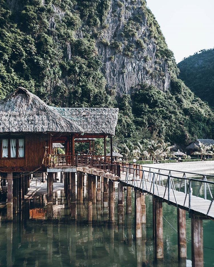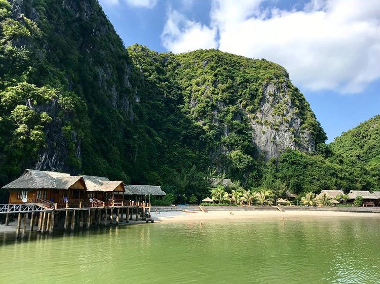 Ấn tượng đầu tiên là những gian nhà gỗ lợp lá cọ, đảo xanh mướt với những bãi cát nhỏ thoải dần xuống làn nước trong xanh. Có thể nói, Nam Cát là một phần đặc sắc của quần thể hàng trăm đảo lớn nhỏ của bức tranh sơn thủy khổng lồ vịnh Lan Hạ.