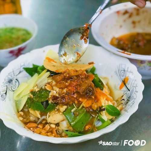 Nếu là lần đầu đến quán bạn sẽ nhận được sự hướng dẫn nhiệt tình của chị chủ để ăn sau cho đúng vị. Bạn sẽ phải thắc mắc không biết chiếc tô to to trên mỗi bàn ăn để làm gì, cho đến khi được bảo đó là tốp mỡ trộn sa tế, một thức ăn kèm nhưng lại tạo nên sự đặc biệt của món.