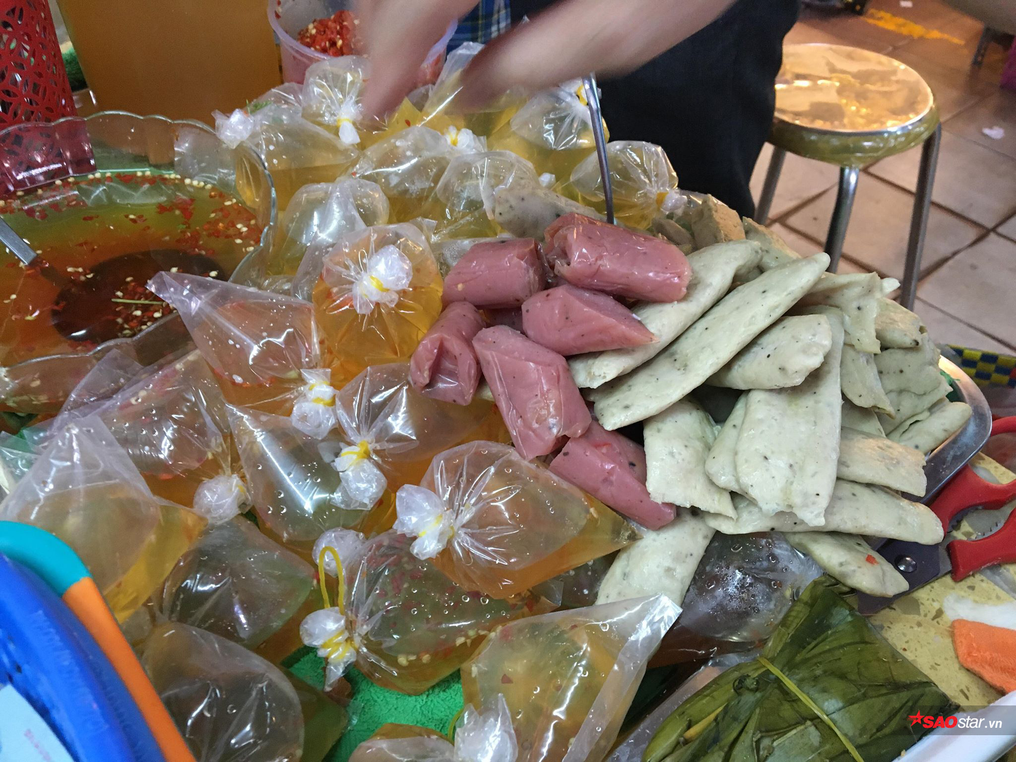 Chả và nem cũng được gia đình cô tự làm, một cây chả hay nem đều đồng giá 5 nghìn đồng. Khách có thể kêu thêm vào phần bánh nếu vẫn còn thèm.
