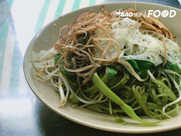 Một tô bún ngon thì không thể thiếu đĩa rau sống ăn kèm. Bắp chuối, rau muống, tía tô,… đầy đủ và tươi ngon. Đặc biệt là thân cây chuối non mang đến cái gion giòn, mát lành cho khẩu vị thêm mới mẻ. Bạn nên nhúng rau vào tô và ăn kèm để món ăn đỡ ngán và thêm hấp dẫn nhé.