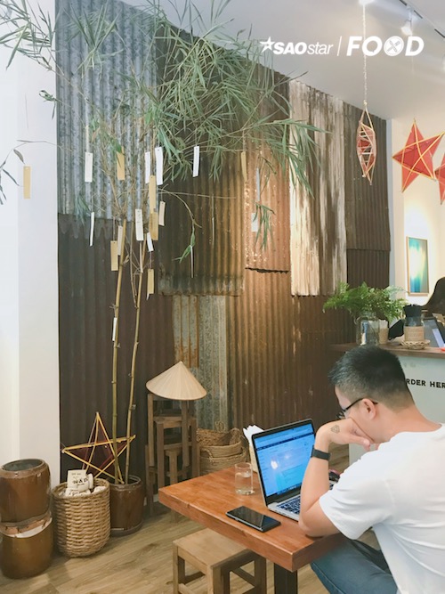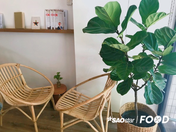 Ở từng góc nhỏ của quán đều được nhấn nhá vài ba chi tiết tạo nên sự ấm cúng, tinh tế. Đơn giản chỉ là những chiếc vỏ tre đan dân dã, hay ghế mây mang âm hưởng của bữa thưởng trà, chiếc kệ nhỏ xinh ở gian bếp, …. tất cả đều được chăm chút tỉ mỉ. Trong gam màu trung tính cùng lối kiến trúc tối giản, đây sẽ là nơi “trú ẩn” an toàn cho bạn.