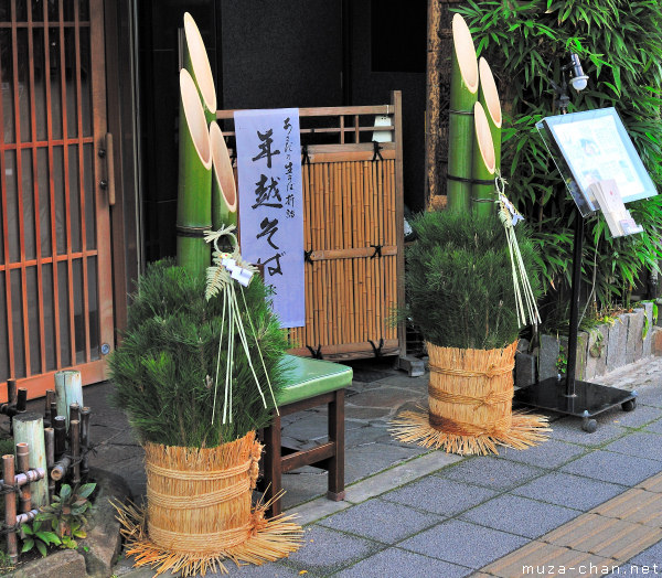 Một ngôi nhà được trang trí theo phong cách Tết truyền thống Nhật thường có kagamimochi, kadomatsu, shimekazari. Kagamimochi là mâm bánh dày ngày Tết, được đặt trên bàn thờ hay nơi trang trọng nhất trong căn nhà. Kadomasu là cây may mắn, gồm một cành thông và tre tươi được đặt trong chậu trước cửa nhà. Sau cùng là shimekazari, tức vòng rơm được treo trên cửa để trừ tà.