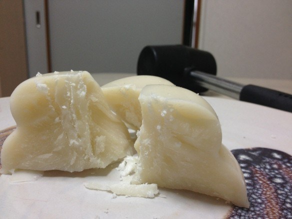Kagamimochi được dâng lên để mời thần linh vào đầu năm, trong thời gian này không ai được phép ăn bánh. Bánh chỉ được ăn khi thần linh đã đi khỏi và gọi là Kagami Biraki. Để thưởng thức Kagamimochi, người ta phải dùng tay để bẻ hoặc dùng búa đập khi bánh còn cứng, tuyệt đối không được dùng dao vì như vậy có nghĩa là cắt đứt quan hệ gia đình. Bên cạnh đó, nhiều người cho rằng thần linh rất ghét vật nhọn nên dùng dao chính là xua đuổi may mắn đi.