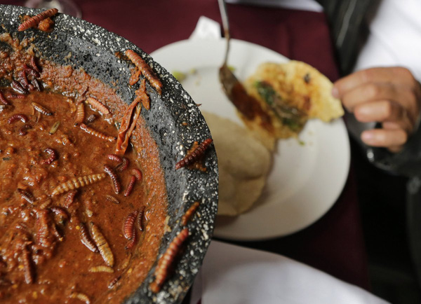 Tại một đất nước như Mexico, côn trùng được xem là món ăn khoái khẩu vì chúng vô cùng ngon miệng và giàu dinh dưỡng. Bánh taco nhân sâu bướm là một trong những món ăn như thế. Người Mexico quan niệm rằng, loại bánh taco là món sandwich đặc biệt và truyền thống. Việc thêm sâu bướm vào nhân bánh giúp món ăn này trông ngon lạ và hấp dẫn hơn.