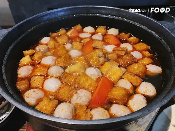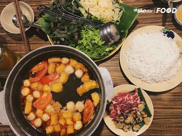 Nước lẩu thanh, đậm đà và chính là sự hài hoà của các nguyên liệu nấu chung tạo nên vị chua cay ấm nồng cho bữa ăn. Trên bếp lửa riêu riêu, cà chua, đậu hũ, viên mọc đầy ắp và dàn trải khắp bề mặt nồi nước dùng.