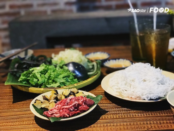 Dĩa thức ăn kèm bao gồm thịt bò và ốc tươi để bạn nhúng vào và ăn ngay. Loại ốc đồng dân dã nhưng mang lại vị ngọt thanh kèm cái giòn sừn sựt khi nhai khiến cho vị ngon lan toả khắp nơi. Thịt bò lại tiếp thêm vị đậm đà và tươi ngon, bạn chỉ cần nhúng vào nồi nước lẩu sôi ục, đảo một vòng rồi vớt ra để thưởng thức.