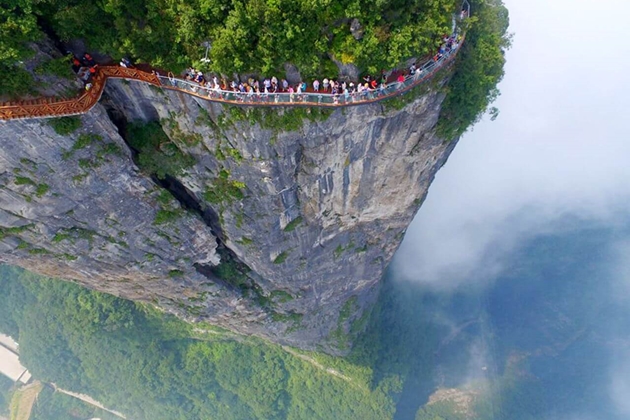 Tới chân núi mới được nửa hành trình, muốn lên tới Cổng Trời du khách phải leo 999 bậc thang bằng đá. Sau đó, men theo cây cầu bằng kính trứ danh, bạn sẽ được chứng kiến ngọn núi mang tên “cột trụ trời Nam” được lấy làm nguyên mẫu trong siêu phẩm Avatar (2009) của đạo diễn lừng danh Hollywood James Cameron. Phượng hoàng cổ trấn cách Trương Gia Giới khoảng 230km về phía nam, nằm yên lặng bên dòng sông Đà Giang. So với Trương Gia Giới, danh tiếng của trấn cổ ngàn năm có vẻ nhỉnh hơn chút bởi cảnh sắc mê mẩn có một không hai.