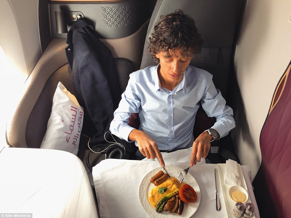 Vị trí ghế của anh Macheraslà 8J. Đó là một chiếc ghế đơn nhưng anh ấy vẫn được trải nghiệm chiếc ghế Qsuite hiện đại, sang trọng và mới nhất trên thế giới.