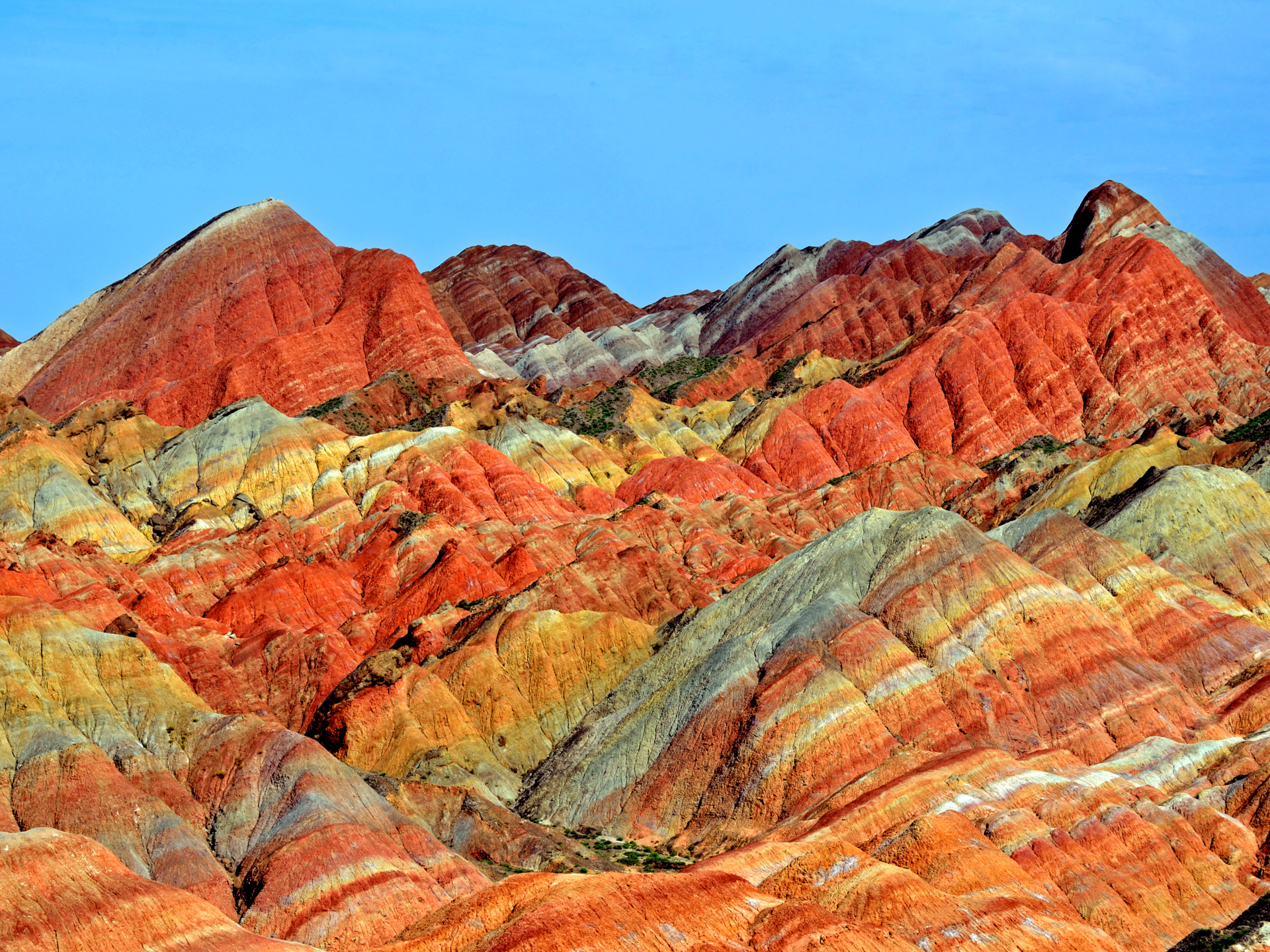 Những màu sắc sặc sỡ của dãy núi Zhangye Danxia, Trung Quốc, là kết quả của quá trình bào mòn sa thạch đỏ trong suốt 27 triệu năm.