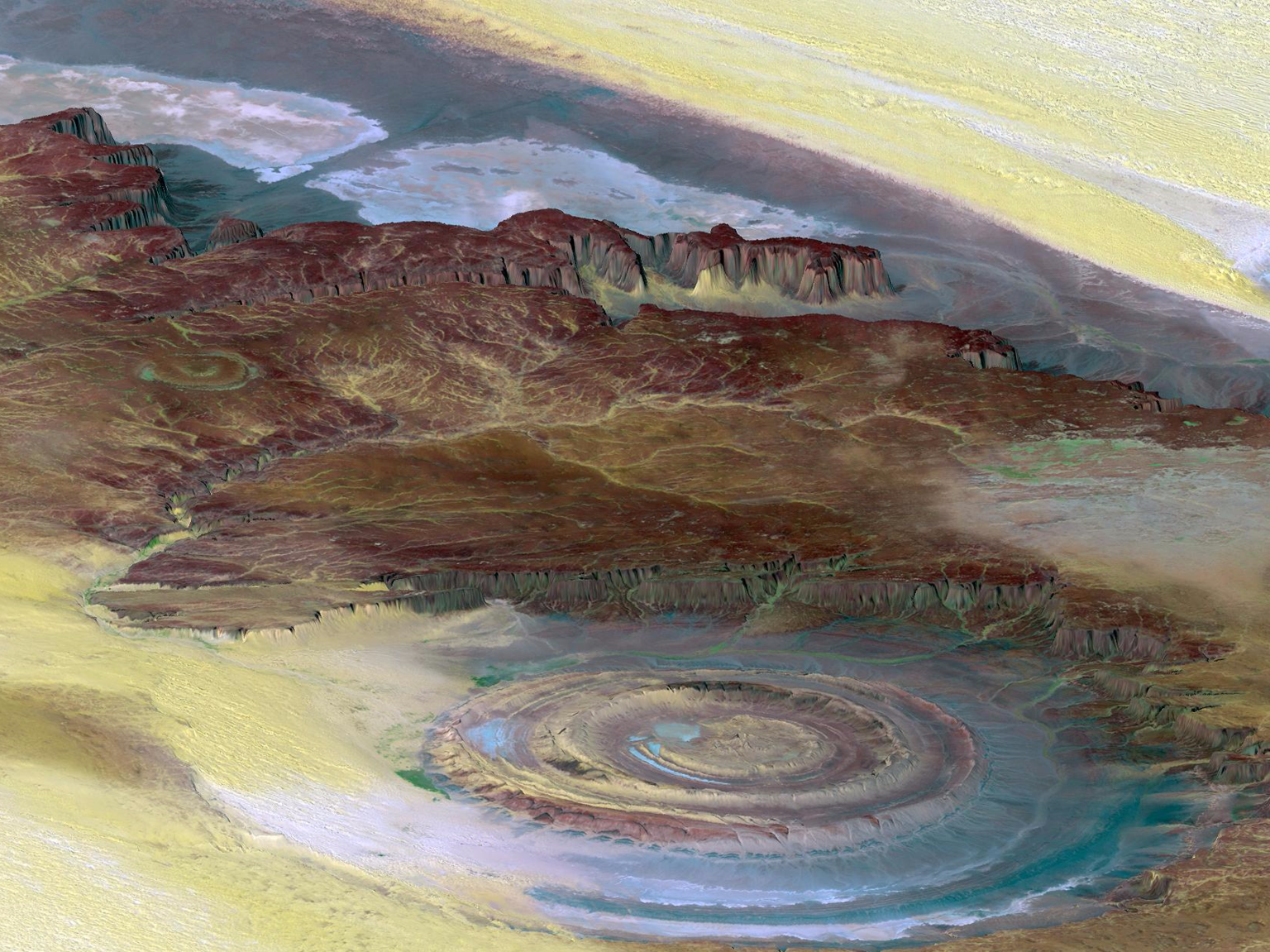 Cấu trúc Richat thuộc Mauritania, còn gọi là “con mắt của Sahara”, là kết cấu địa chất dài hơn 40km được hình thành từ quá trình xói mòn đất chứ không phải từ…một cuộc xâm lăng của người ngoài hành tinh như nhiều người vẫn tưởng.