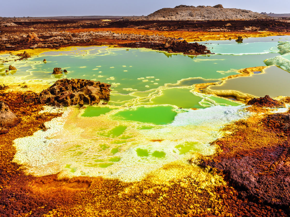 Sự hình thành của quặng lưu huỳnh và mỏ muối khiến cho Lòng chảo Danakil thuộc Ethiopia được mệnh danh là “vùng đất chết” trên hành tinh.