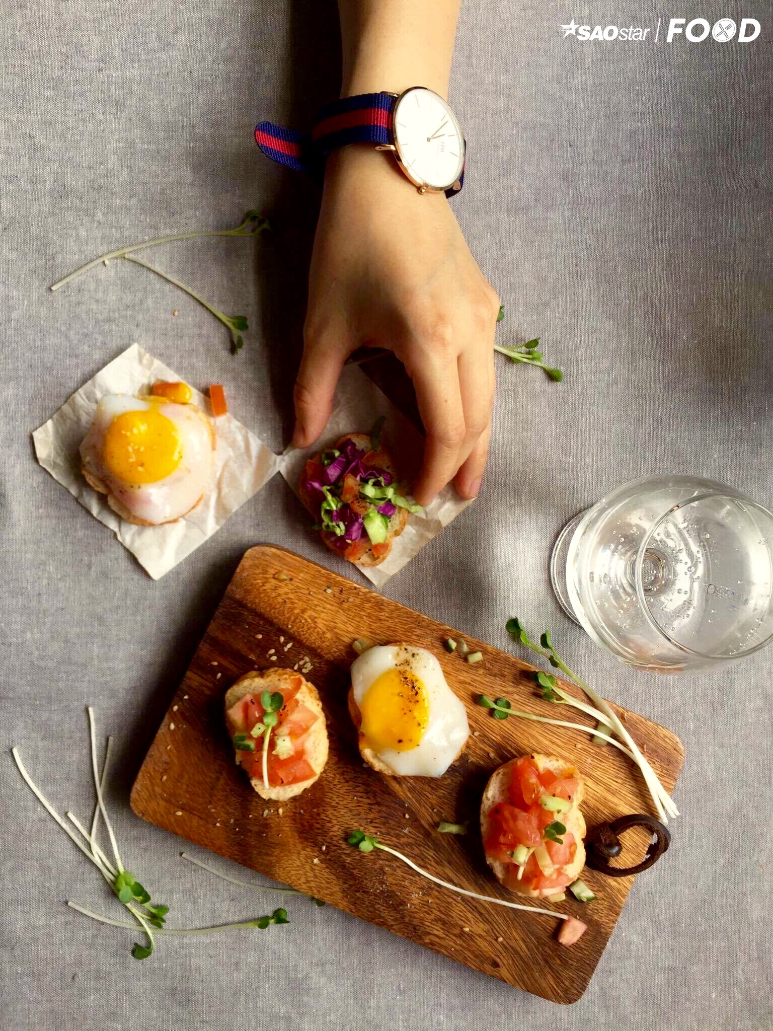 Bánh mì đã đầy đủ lượng cho nhóm tinh bột. Thay vì ăn bánh mì tươi chúng ta có thể sấy khô, vừa lạ miệng vừa bảo quản được lâu. Protein đến từ trứng gà, bạn ốp la chín hoặc lòng đào để phần lòng đỏ chảy ra khi ăn. Chút salad thêm màu sắc, thêm hương vị và thêm cả Vitamin, khoáng chất cân bằng lại giá trị dinh dưỡng. Chỉ là món ăn đơn giản nhưng luôn đẹp và không kém phần hấp dẫn.