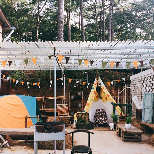 Ngoài phòng, nơi đây còn có những chiếc lều xinh xắn và đáng yêu ở khuôn viên. Buổi tối, bạn có thể sinh hoạt ở không gian này. Vừa mộc mạc, gần gũi, Home Farm giúp chuyến hành trình của bạn nhẹ nhàng và ấm áp.