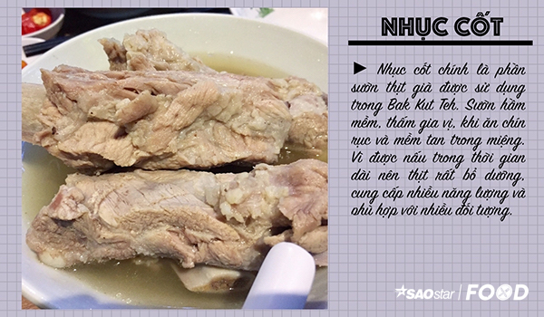 Nếu bạn dùng Bak-kut-teh lần đầu, đừng bị đánh lừa bởi suy nghĩ hương vị sẽ rất nhạt nhẽo, dễ ngán. Nhìn bên ngoài, Bak-kut-teh trông khá kém hấp dẫn vì không có màu sắc bóng bẩy, nổi bật như phần lớn những món Hoa khác. Tuy nhiên, tôi đảm bảo rằng bạn sẽ vô cùng bất ngờ vì sau thứ nước dùng nom nhạt thếch và kém vị kia chính là một thứ nước dùng hảo hạng, cô đặc vị xương thịt nấu kỹ và một cuộc bùng nổ thảo mộc vô cùng thú vị diễn ra với vị giác. Bạn sẽ phải húp trọn đến giọt cuối cùng, tận hưởng khoảng thời gian tuyệt vời với thịt sườn mềm rục cùng các món ăn kèm vô cùng hấp dẫn, tròn vị và thơm ngon.