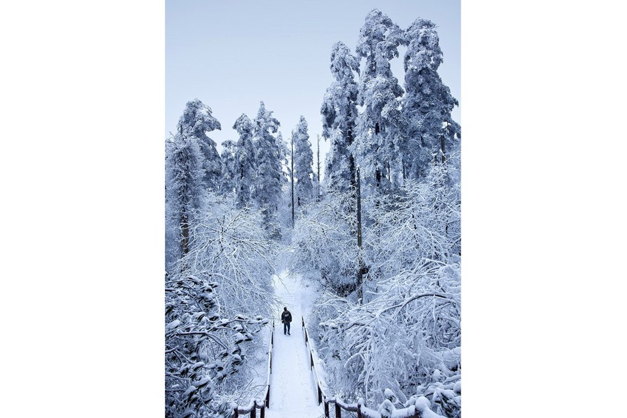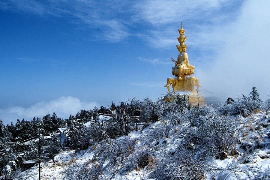 Vào mùa đông, nhiệt độ xuống thấp, lượng tuyết rơi dày phủ trên núi khiến Nga Mi trở nên đẹp kỳ ảo.