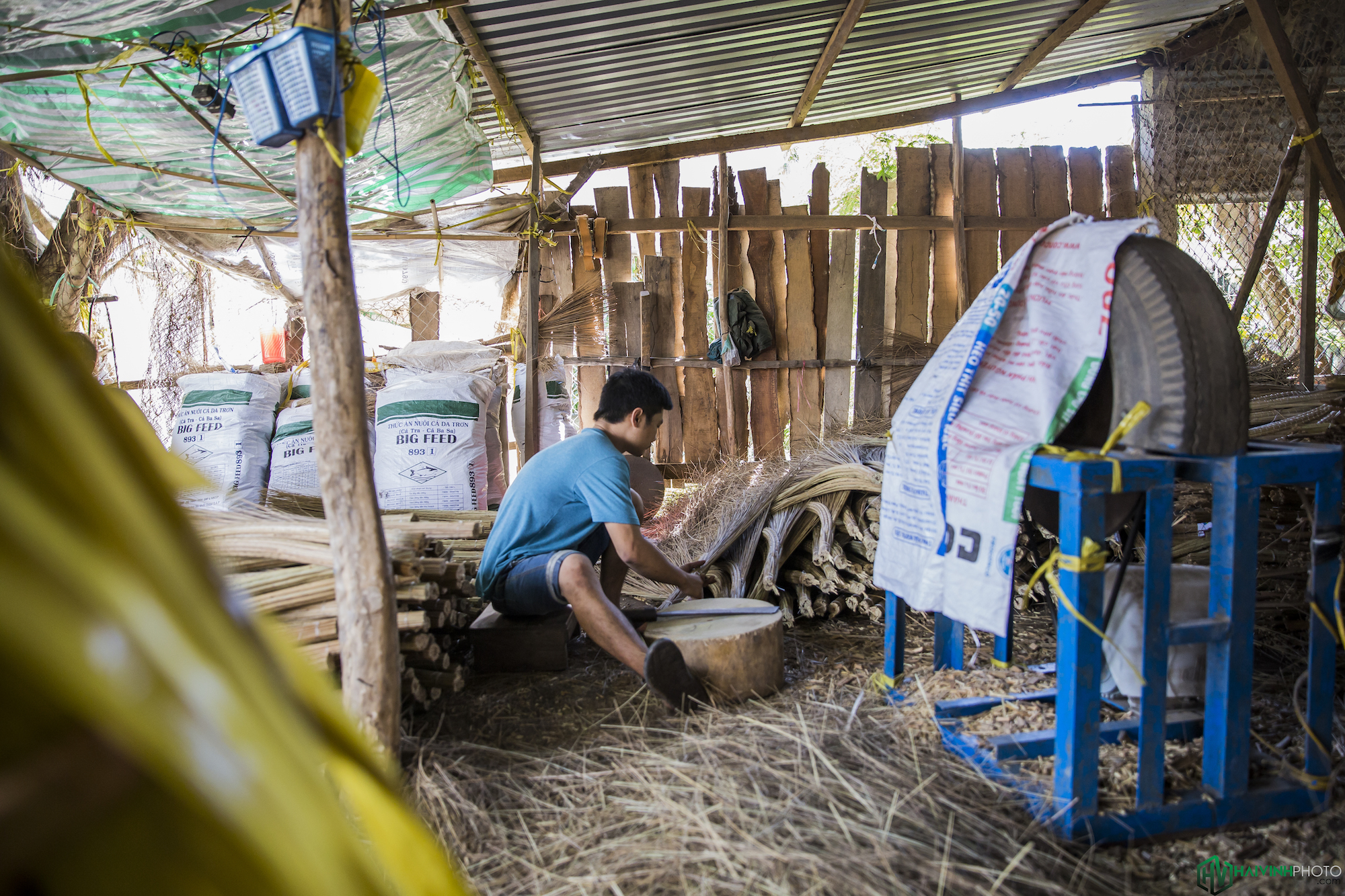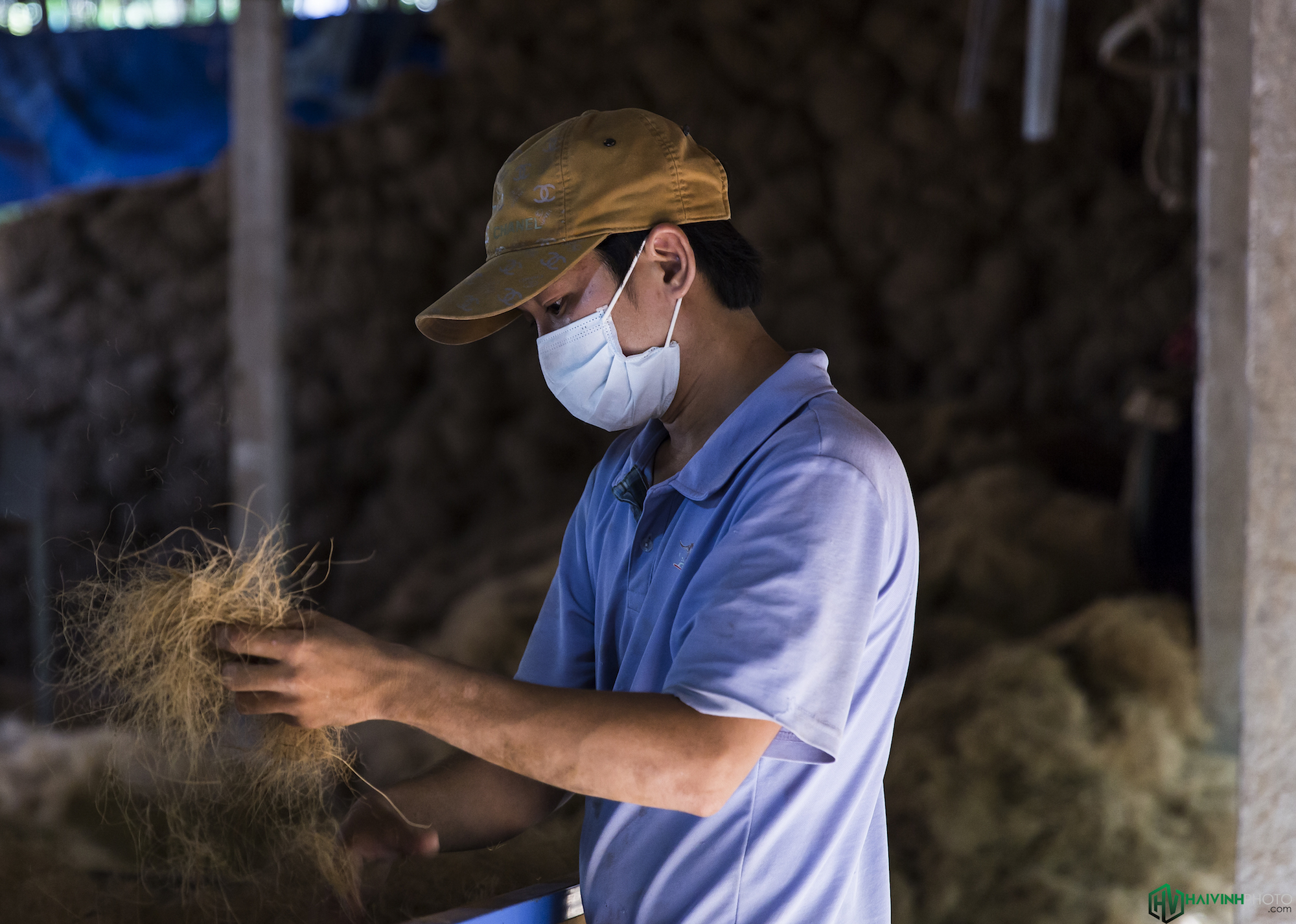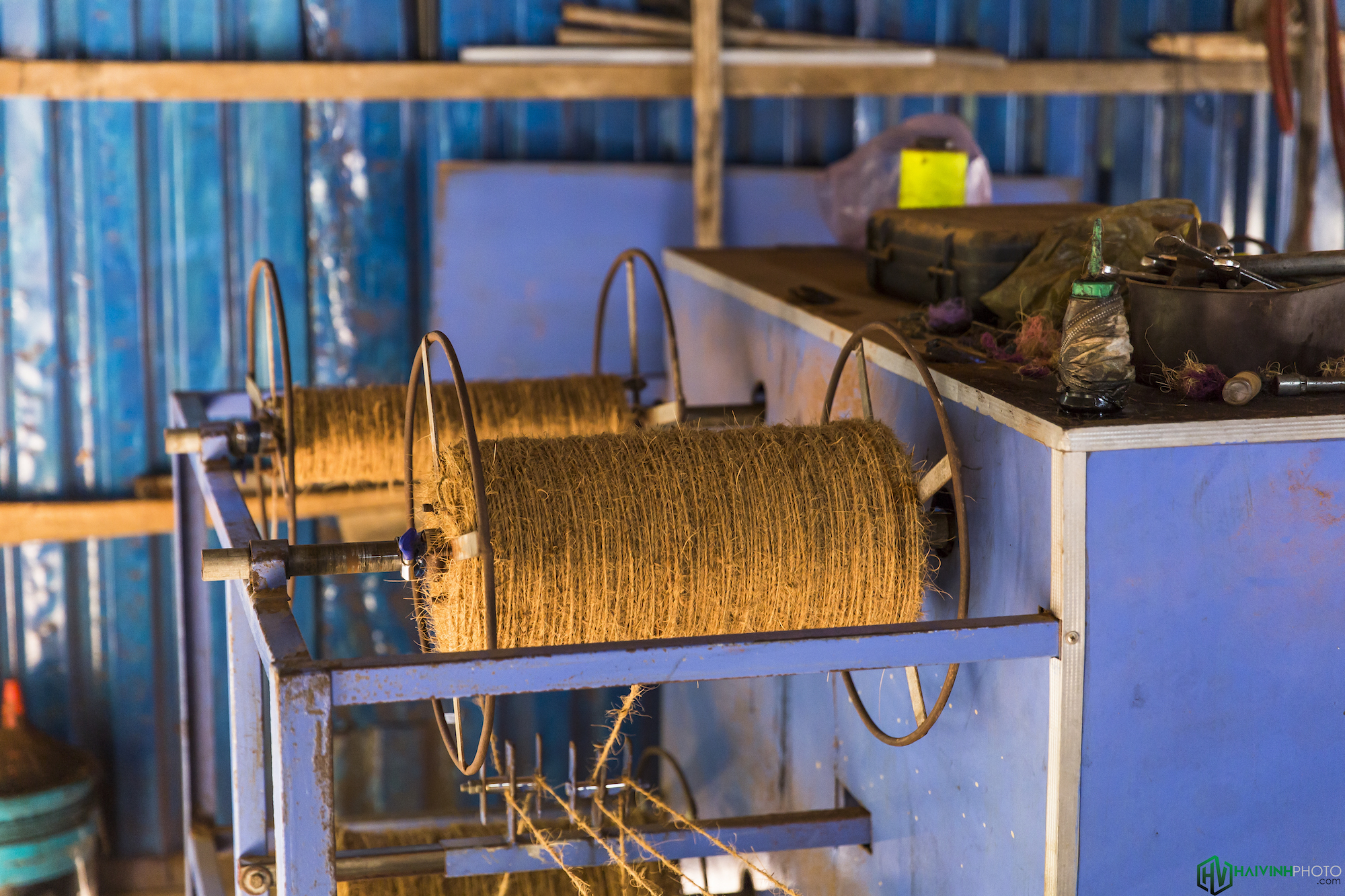Gần đó là một cơ sở sản xuất chỉ sơ dừa, quả thực cây dừa không bỏ phần nào hết từ gốc tới ngọn đều tận dụng và ra thành phẩm.