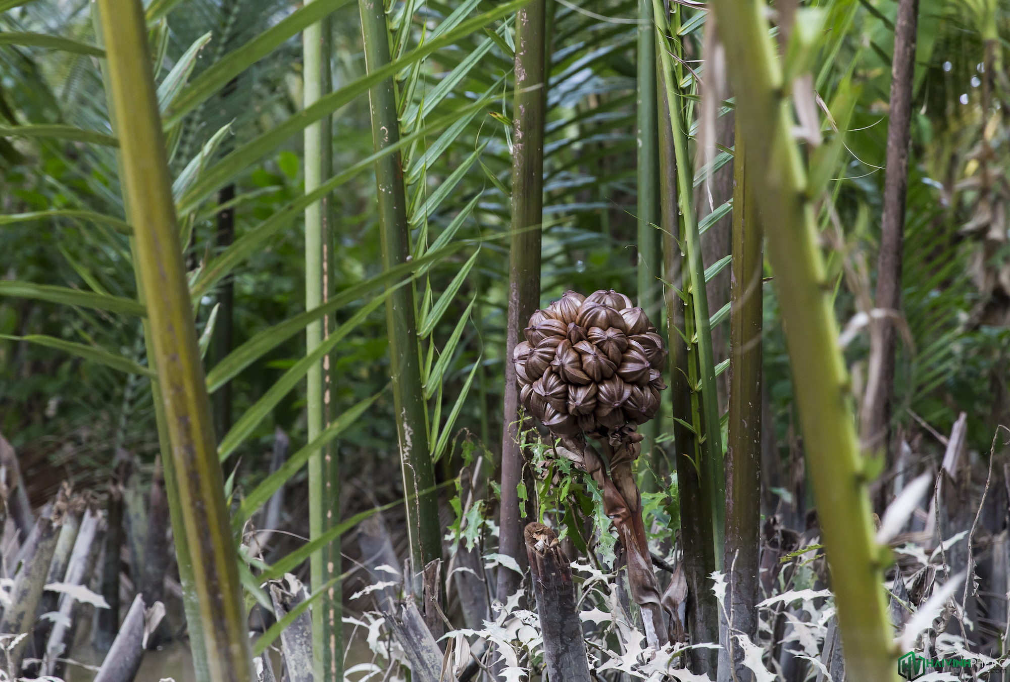 Hai bên đường rất nhiều dừa nước, dừa nước nạo phần cơm ra, trộn với chút đường và đá làm thành món giải khát tuyệt vời.
