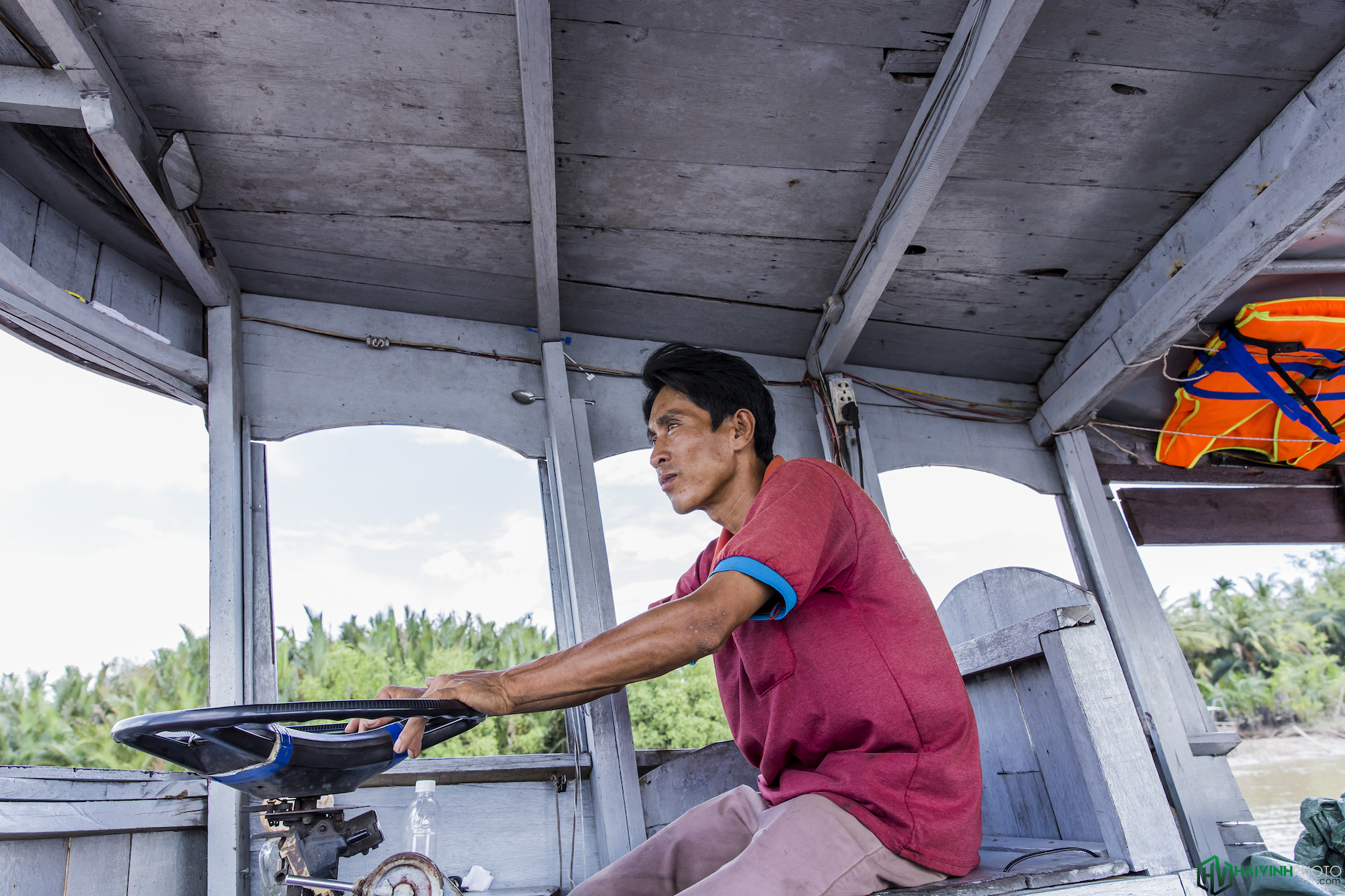 Anh tài công dễ thương, với hàng chục năm kinh nghiệm lái thuyền dọc ngang trên dòng sông này.