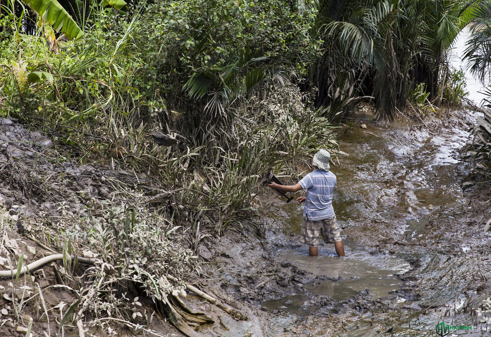 Ăn trưa xong một số anh em dùng xuồng ba lá chèo sâu vào bên trong khu vực của người dân.