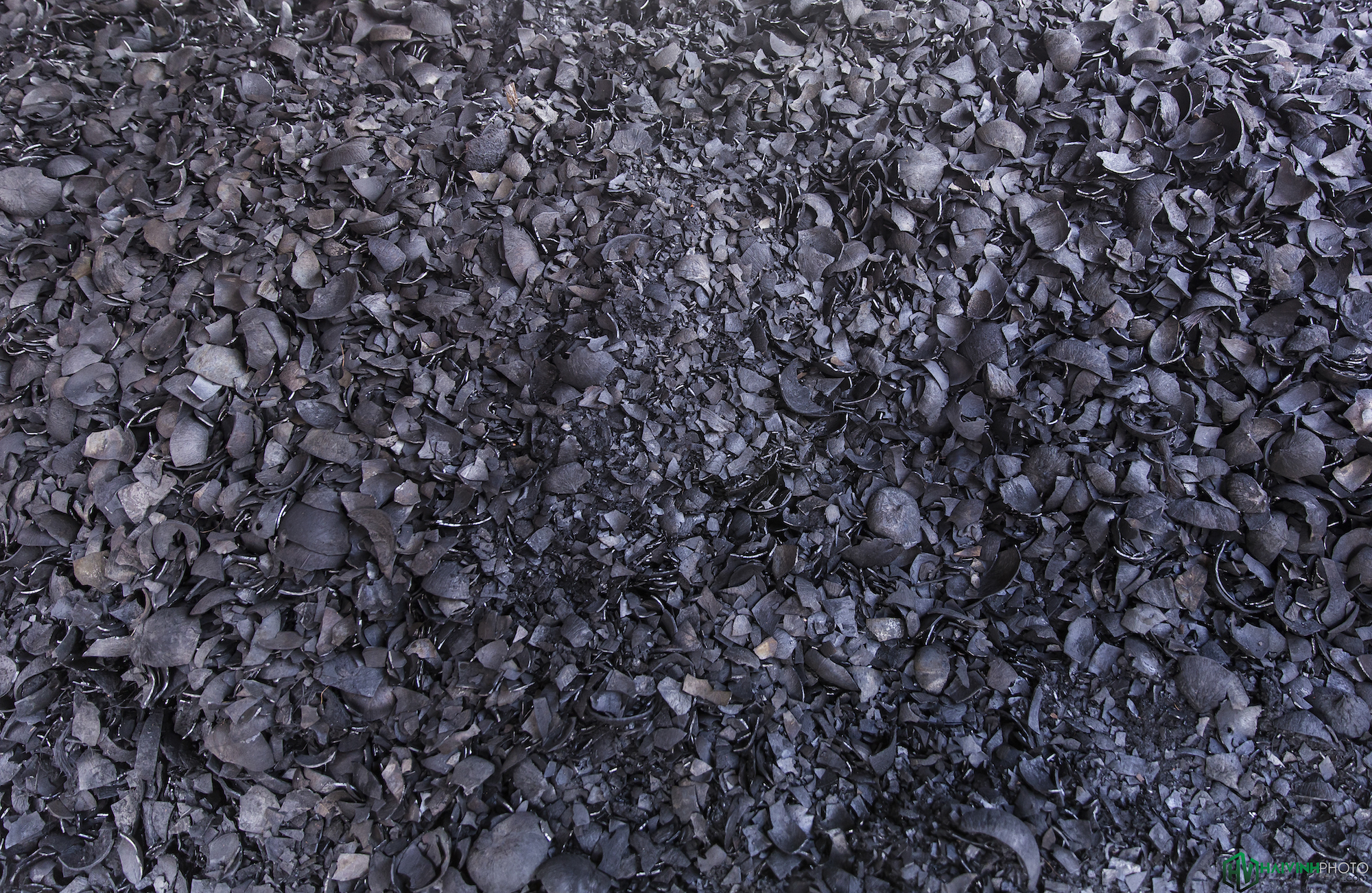 Rời khỏi lò gạch chúng tôi đi bộ qua khu vực làm than hoạt tính từ vỏ dừa, một anh đang tát mương ở gần đó.