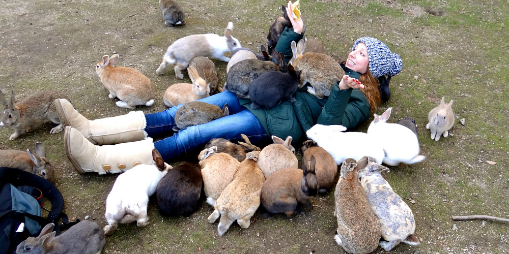Ở nhiều nơi khác, loài thỏ thường có xu hướng sợ hãi và chạy trốn khi nhìn thấy con người. Nhưng những chú thỏ tại Okunoshima thì lại rất dạn dĩ. Chúng thường “bao vây” lấy du khách, chơi đùa hay thậm chí là nhảy cả lên người.