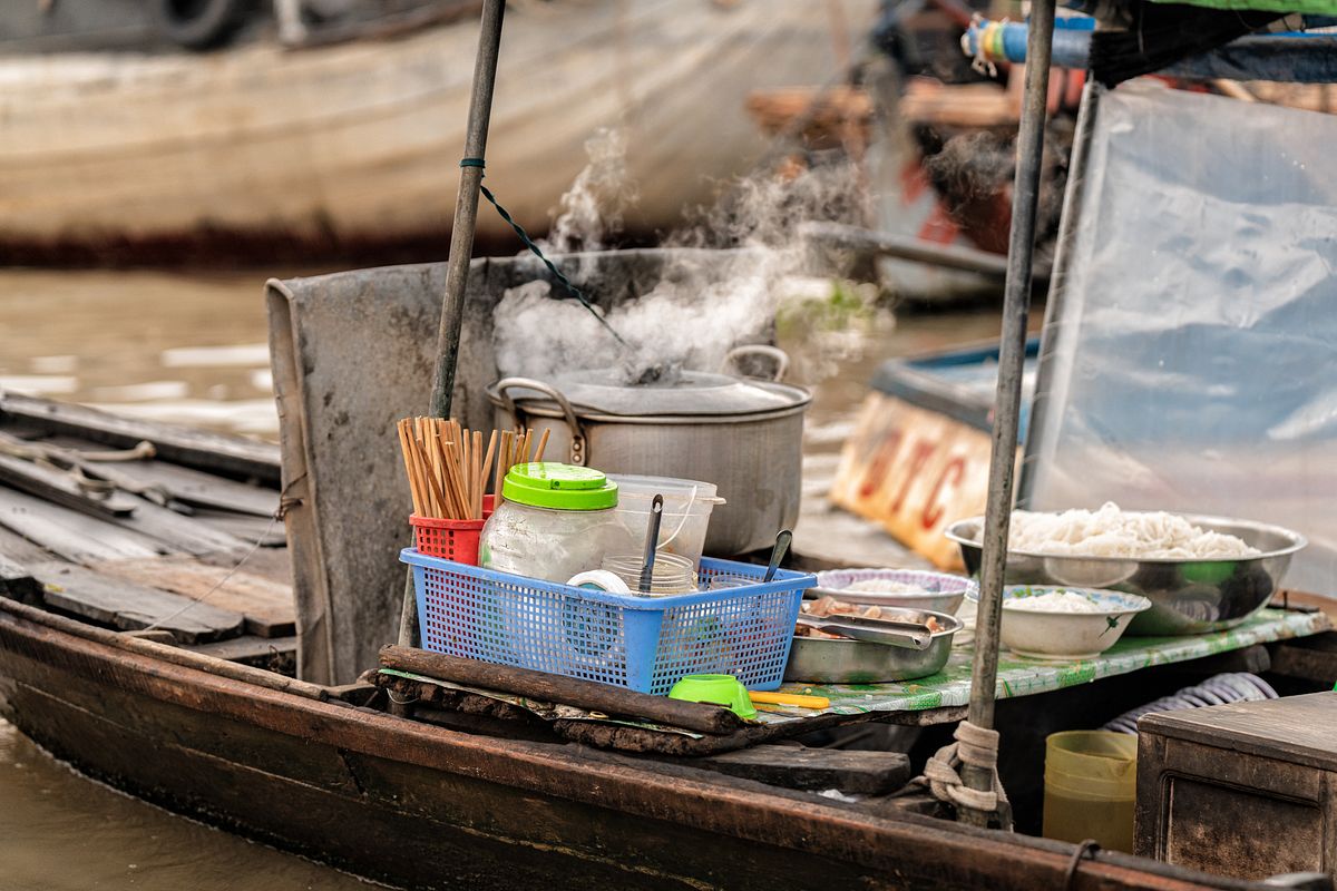 Đi chợ nổi lúc sáng sớm cũng là lúc du khách thấy được rất nhiều cảnh mua bán tấp nập của người dân trên chiếc xuồng nhỏ, còn khi đi muộn thì chợ chỉ còn lại những thuyền lớn của thương lái ở lại để đón buổi chợ hôm sau. Có thể nói, chợ nổi chẳng thiếu thứ gì từ bánh mì, bánh bao, bún, hủ tiếu, trái cây, rau củ, vé số… bạn có thể mua bất cứ thứ gì, từ to đến nhỏ ở chợ nổi.