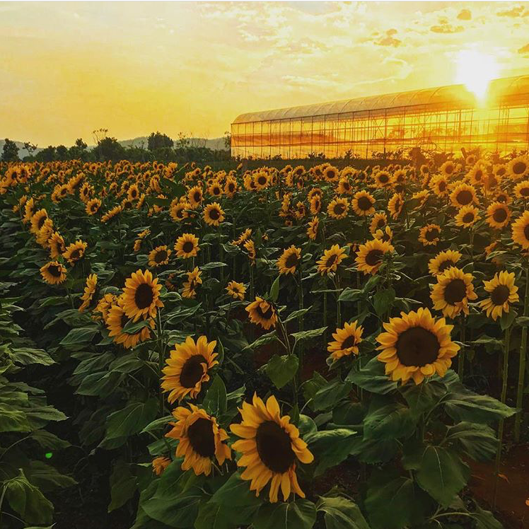 Không cần phải đến Tuscany, Ý để chiêm ngưỡng cánh đồng hoa Hướng Dương nữa vì ở ngay dưới chân đèo Tà Nung này có cả một cánh đồng “hoa mặt trời” nở rộ, đẹp đẽ không kém! Vườn hoa tràn ngập trong sắc vàng tươi, nở rộ, rung rinh trước gió vẽ nên bức tranh căng tràn sức sống. Vườn hoa hướng dương cũng nổi bật nhất vào độ tháng 10 - tháng 12 cũng vào đúng thời điểm của những bông hoa cải khoe sắc.
