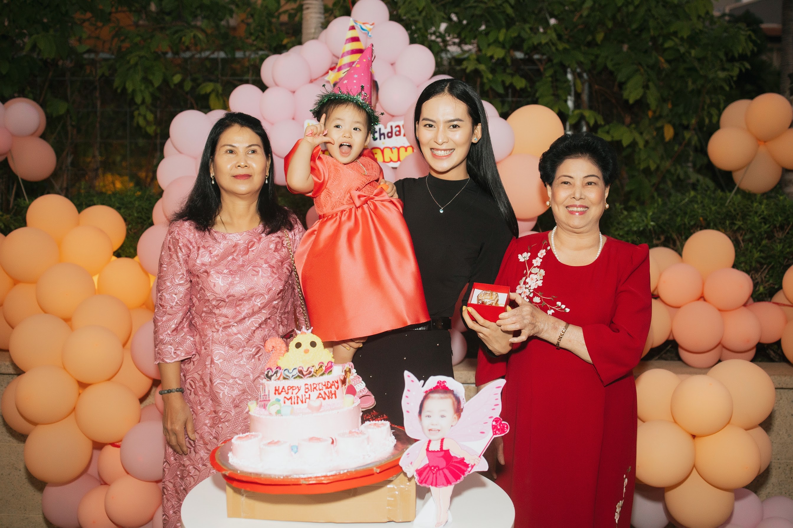 Buổi tiệc ấm cúng chỉ có những người thân trong gia đình. Bố mẹ Sang Lê bay từ Phú Yên vào Sài Gòn mừng sinh nhật cháu ngoại, vợ chồng Sang Lê và bà nội.