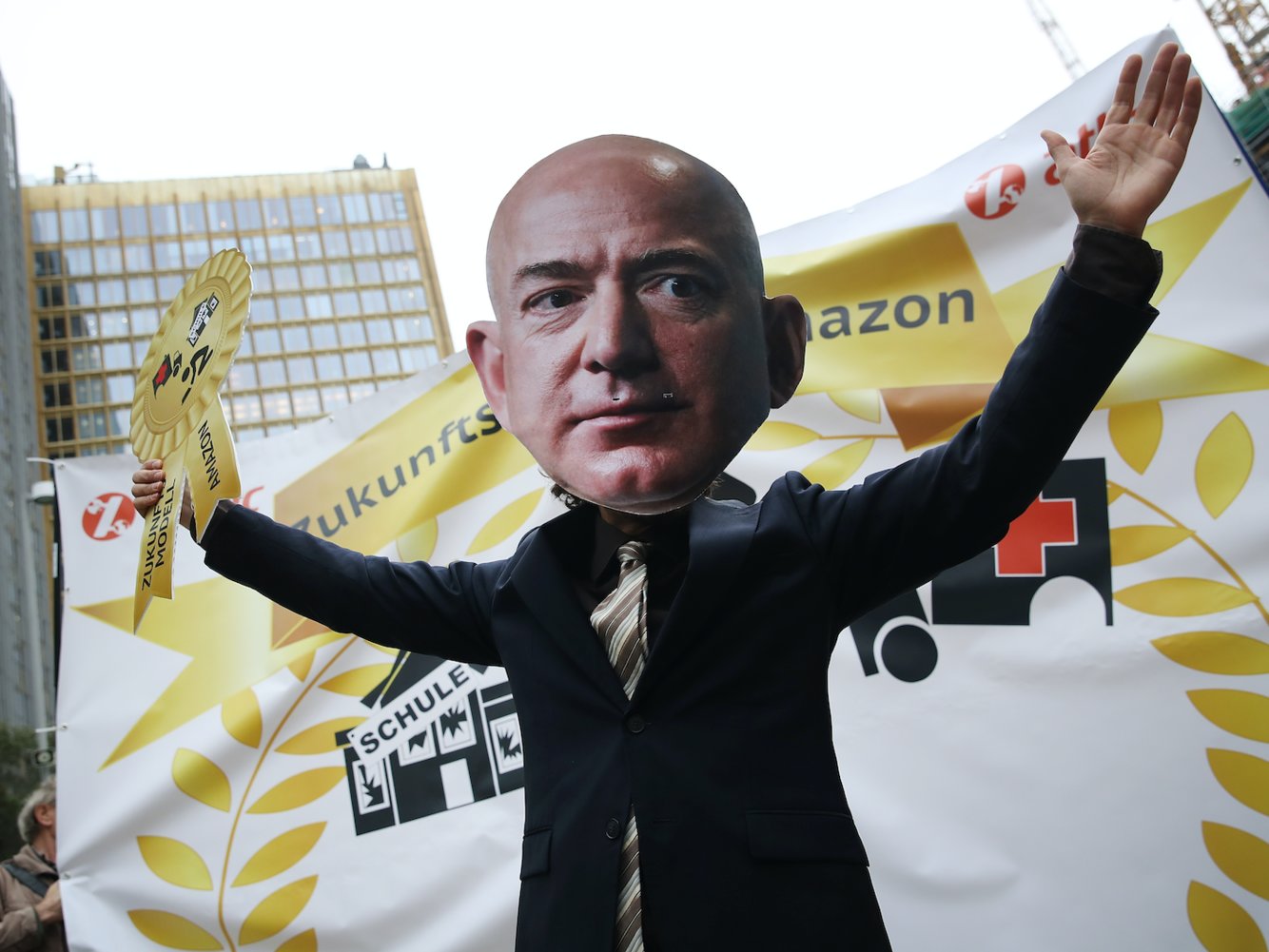 Tháng 4: Jeff Bezos đến Đức để nhận một giải thường từ công ty mẹ của Business Insider là Axel Springer. Thế nhưng, ông cũng được chào đón bởi không ít người phản đối.