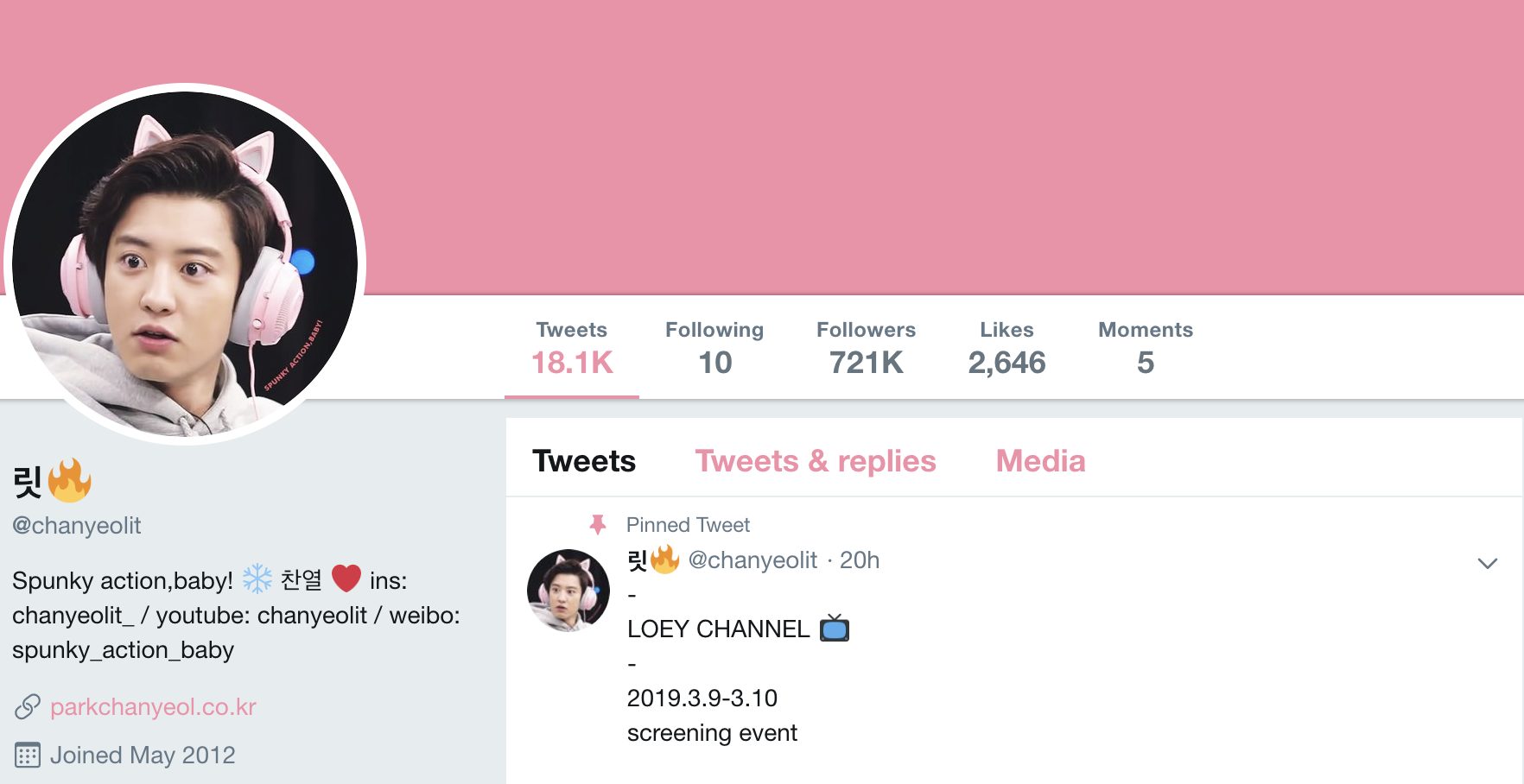 10. Fansite Spunky action, baby! Của Chanyeol (EXO) - 721 nghìn followers