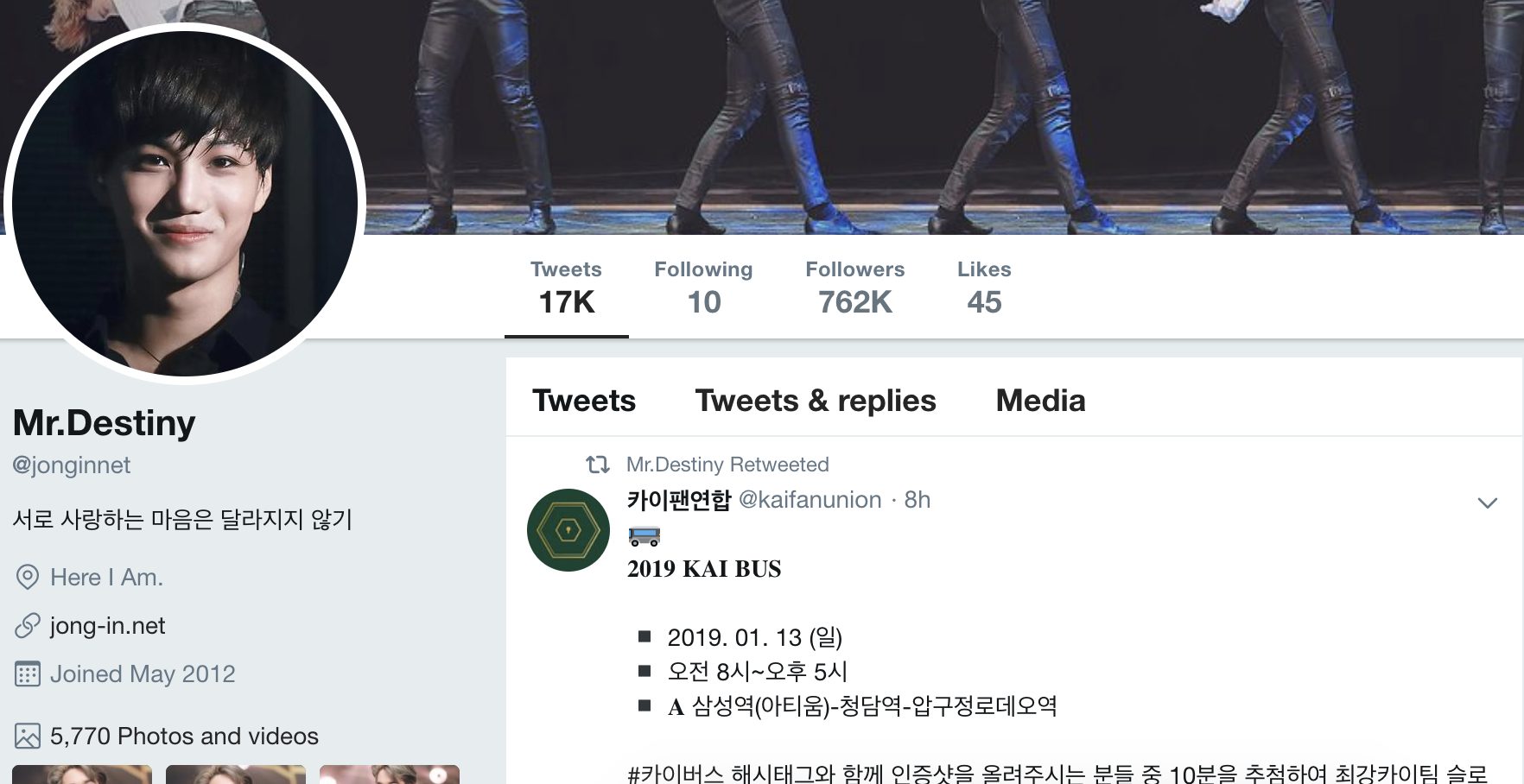9. Fansite Mr.Destiny của Kai (EXO) - 762 nghìn followers