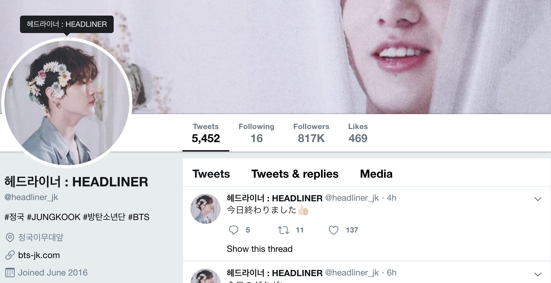 7. Fansite HEADLINER của Jungkook (BTS) - 817,2 nghìn followers