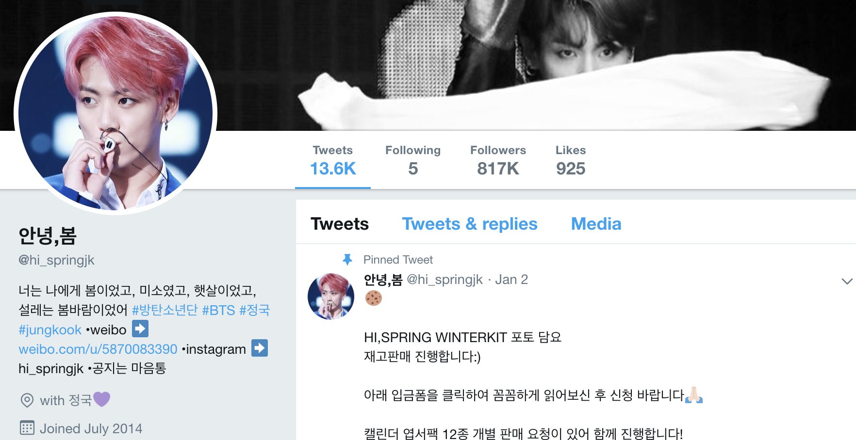8. Fansite HI,SPRING của Jungkook (BTS) - 817,1 nghìn followers