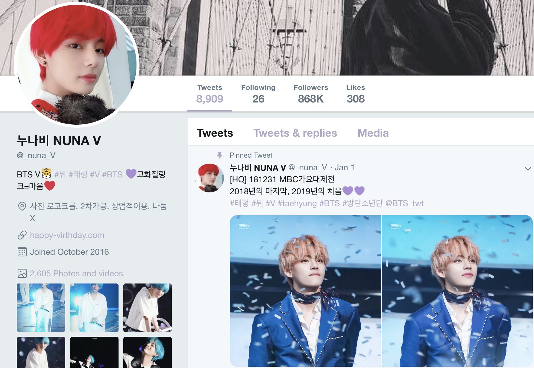 6. Fansite NUNA V của V (BTS) - 868 nghìn followers