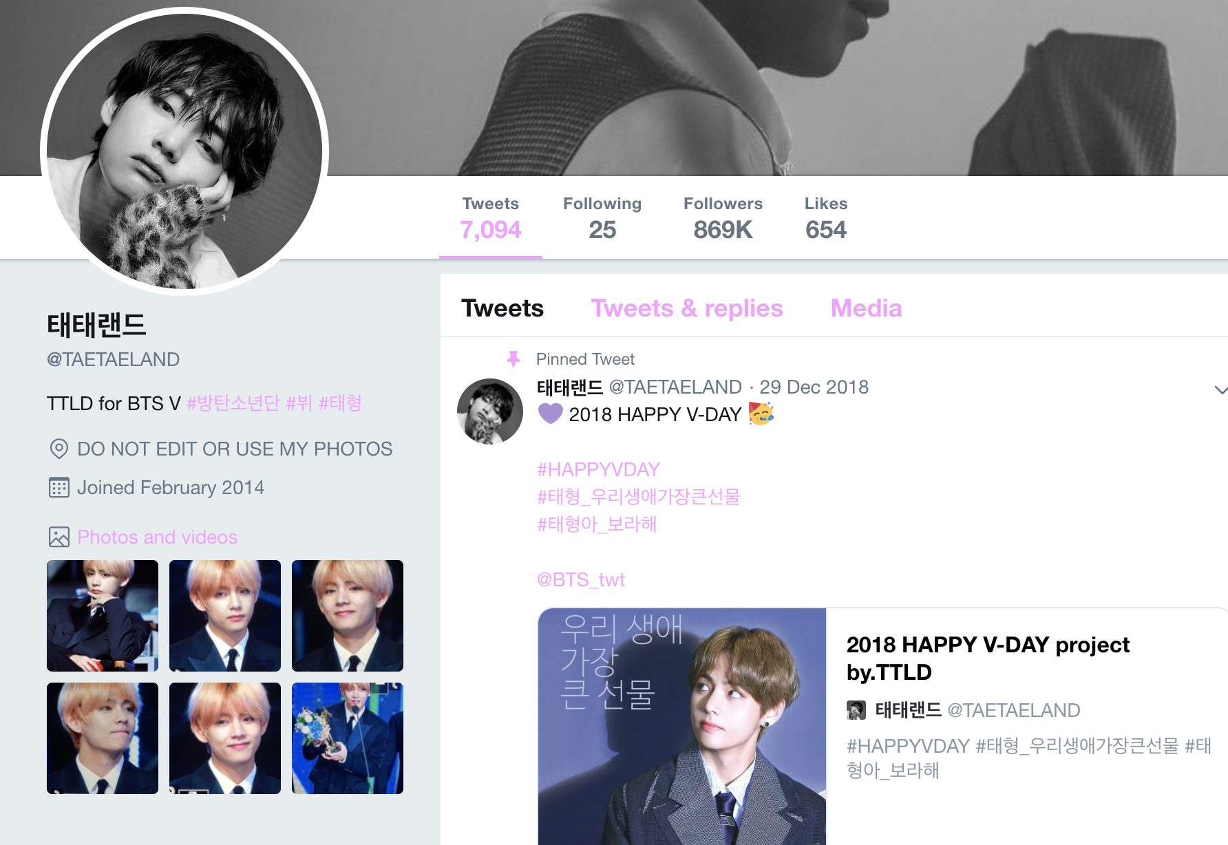 5. Fansite TAETAELAND của V (BTS) - 869 nghìn followers