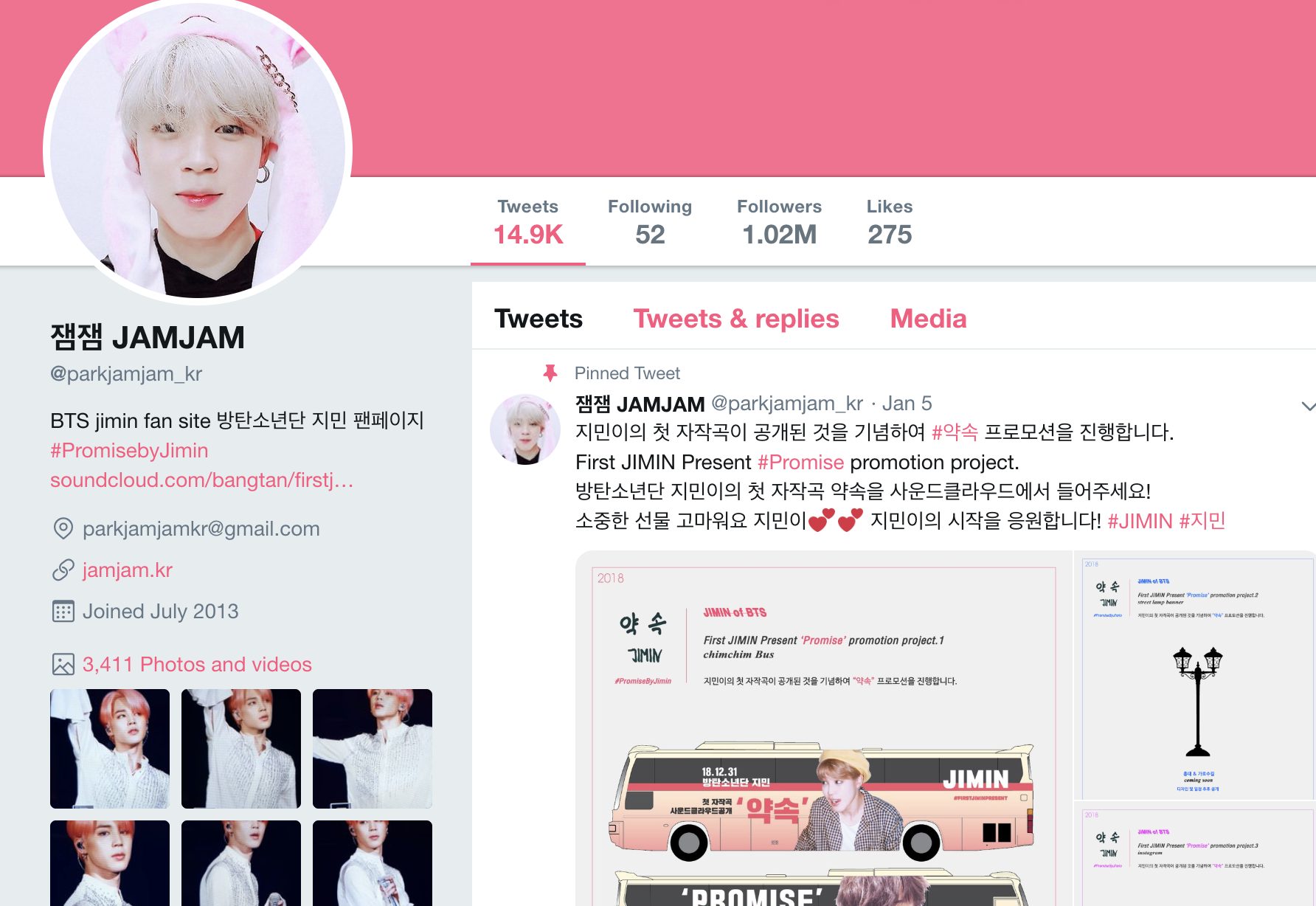 4. Fansite JAMJAM của Jimin (BTS) - 1,02 triệu followers
