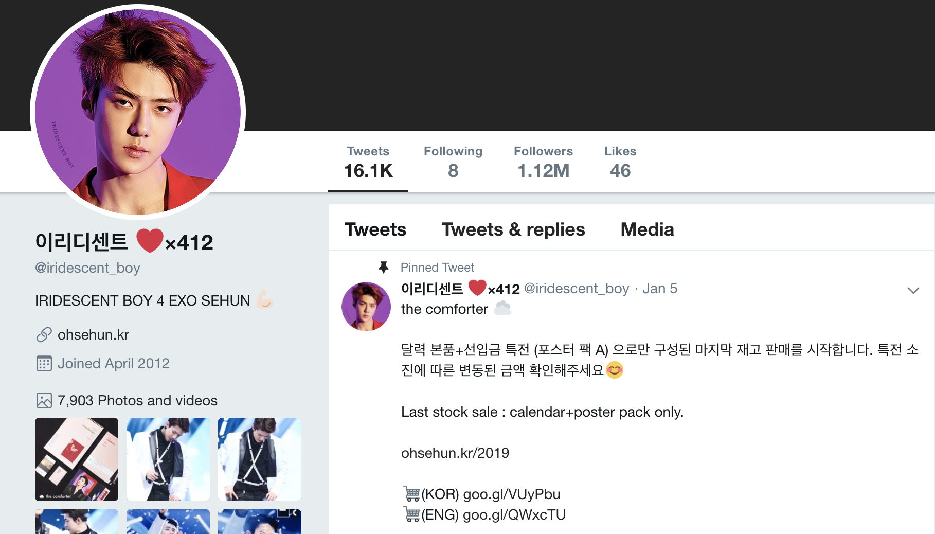 2. Fansite IRIDESCENT BOY của Sehun (EXO) - 1,122 triệu followers