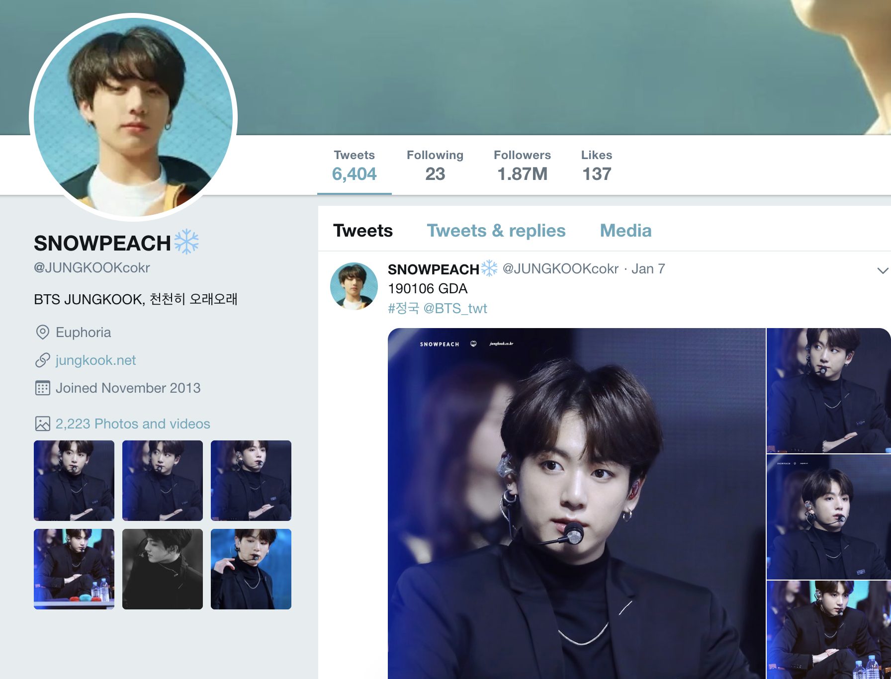 1. Fansite SNOWPEACH của Jungkook (BTS) - 1,87 triệu followers