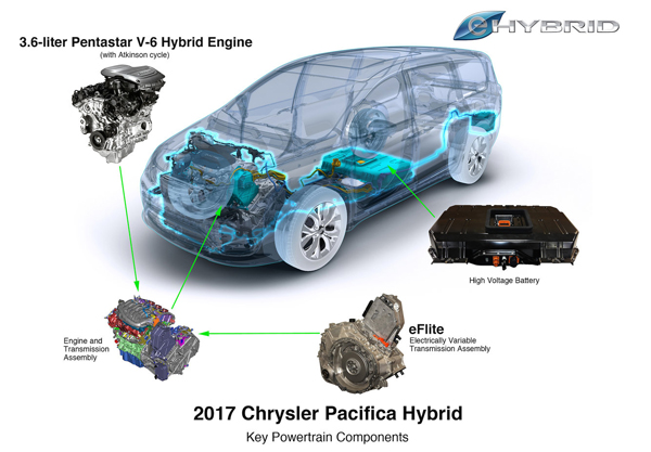 2. Chrysler Pacifica Hybrid: Động cơ Pentastar V6 3,6L cùng một hệ thống plug-in hybrid.